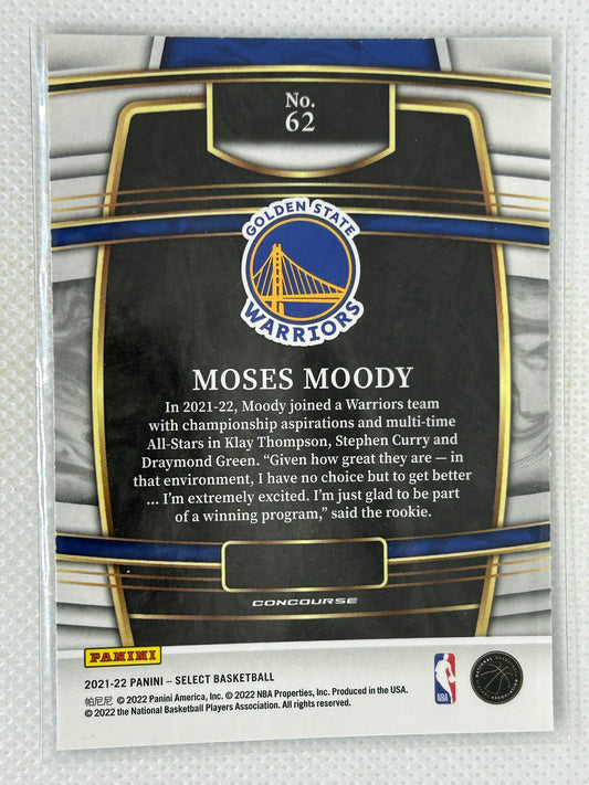 2021-22 Panini Select Rookie Moses Moody #62 Golden State Warriors