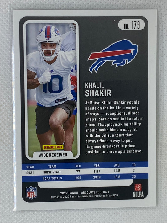 2022 Panini Absolute Football Rookie Khalil Shakir #179 Buffalo Bills