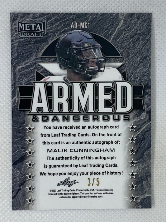 2022 Leaf Metal Draft Malik Cunningham Autograph #AD-MC1 /5 New England Patriots