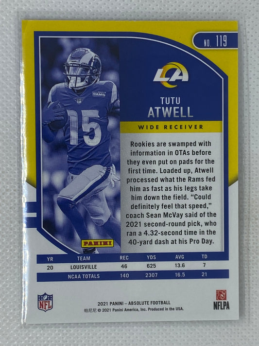 2022 Panini Absolute Football Rookie Tutu Atwell #119 Los Angeles Rams