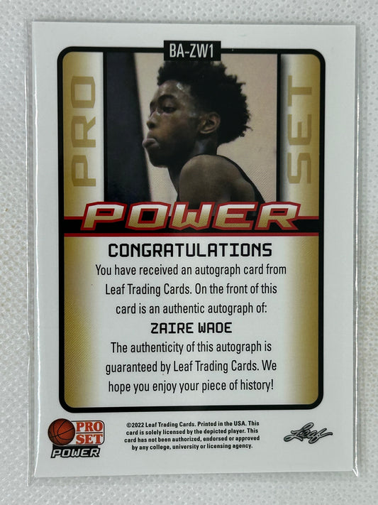 2022 Leaf Pro Set Power Autograph Zaire Wade BA-ZW1