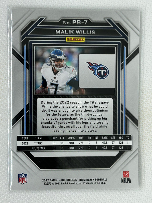 2022 Chronicles Prizm Black Malik Willis Prizm Rookie #PB7 Tennessee Titans