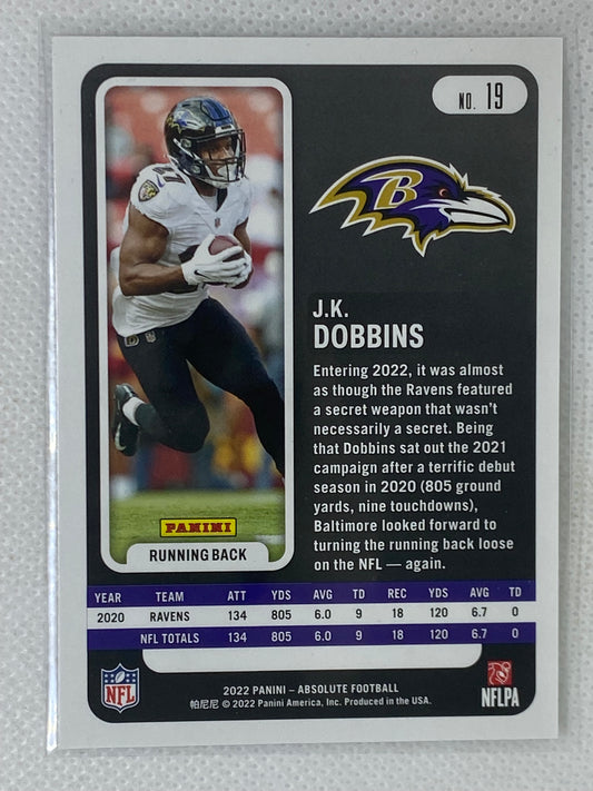 2022 Panini Absolute Football Green J.K. Dobbins #19 Baltimore Ravens