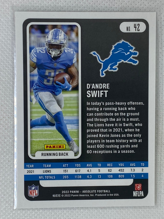 2022 Panini Absolute Football Green D'Andre Swift #42 Detroit Lions