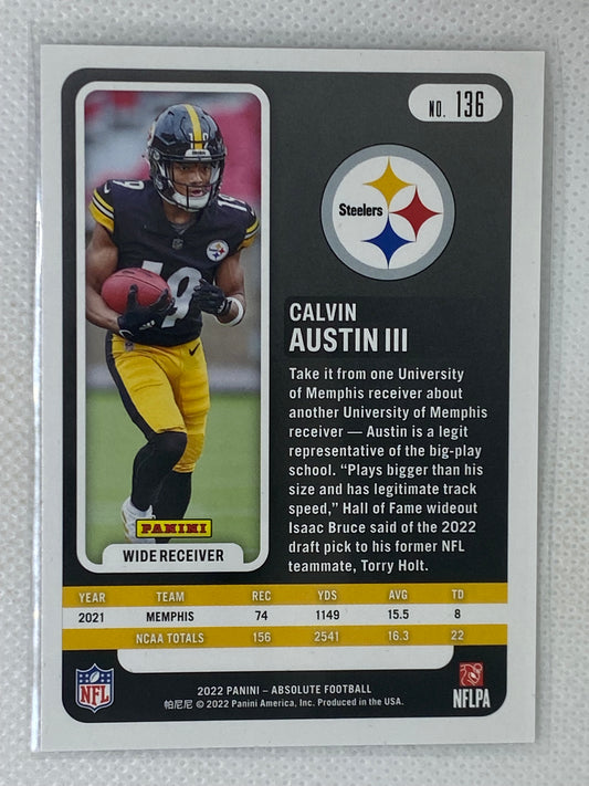 2022 Panini Absolute Football Rookie Calvin Austin III #136 Pittsburgh Steelers