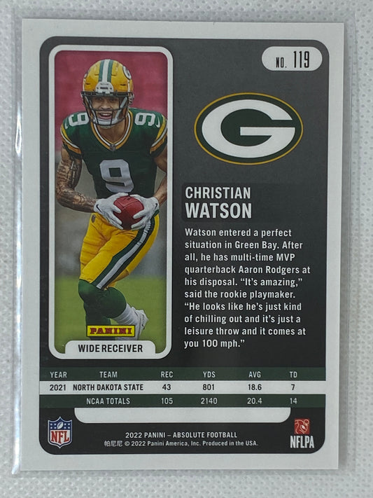 2022 Panini Absolute Christian Watson #119 Rookie RC Green Bay Packers