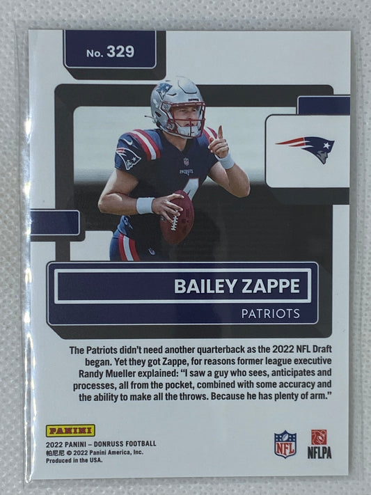 2022 Donruss Bailey Zappe Gold Press Proof Premium Rated Rookie #329 New England Patriots