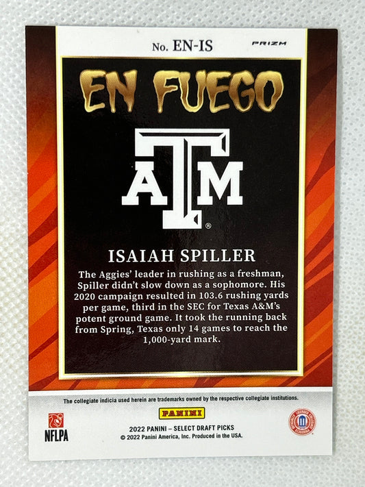 2022 Panini Select Draft Picks En Fuego #EN-IS Isaiah Spiller Texas A&M Aggies
