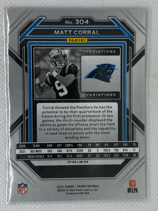 2022 Panini Prizm Matt Corral Negative Prizm Variation Rookie RC #304 SP Carolina Panthers