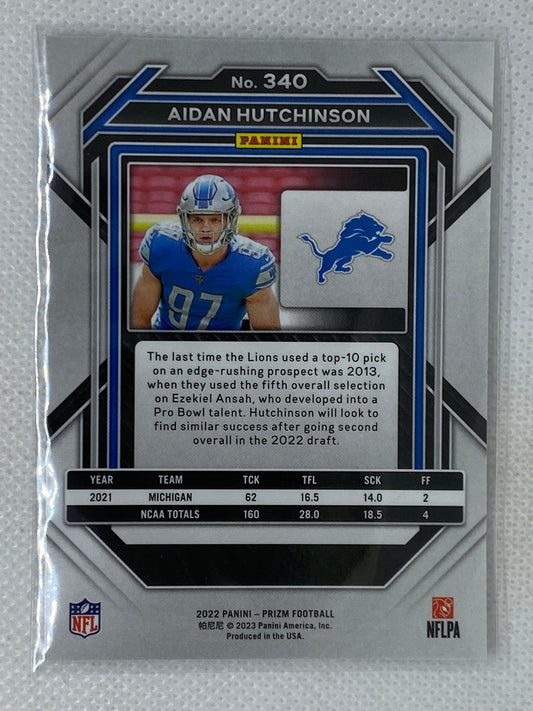 2022 Panini Prizm Base Rookie Aiden Hutchinson #340 Detroit Lions