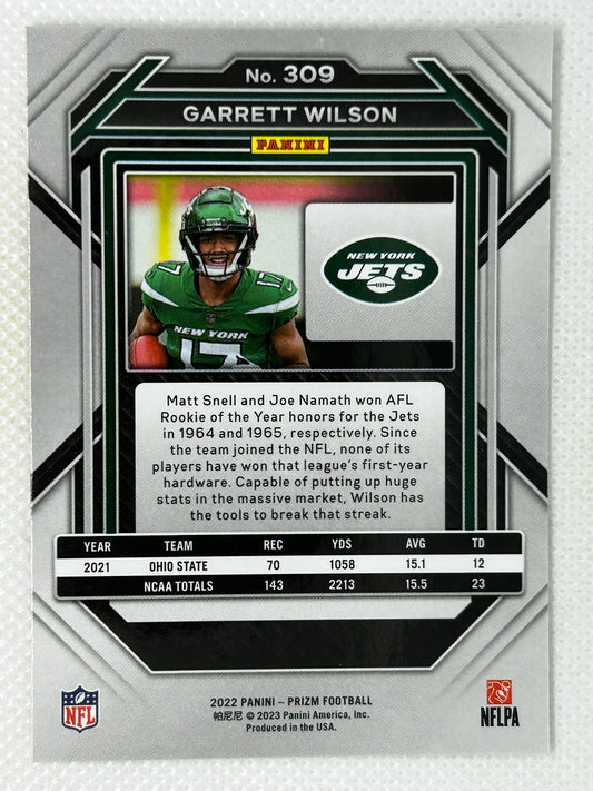 2022 Panini Prizm Rookie Card Garrett Wilson #309 New York Jets