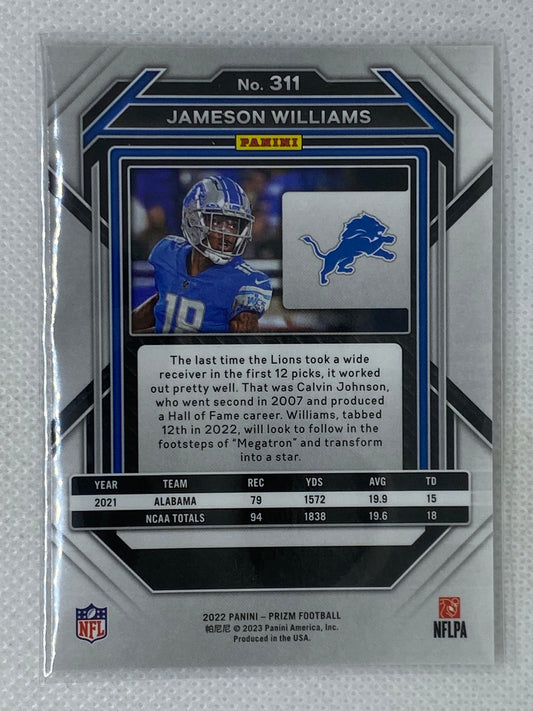 2022 Panini Prizm Base Rookie Jameson Williams #311 Detroit Lions