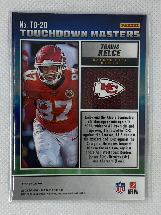 2022 Panini Mosaic Travis Kelce #TD-20 Touchdown Masters Silver Mosaic Prizm Kansas City Chiefs