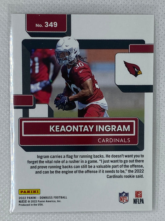 2022 Panini Donruss Rated Rookie #349 Keaontay Ingram Arizona Cardinals