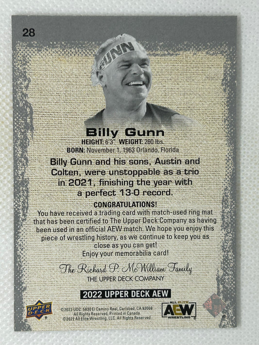 2022 Upper Deck AEW Billy Gunn Gold Mat Relic #28