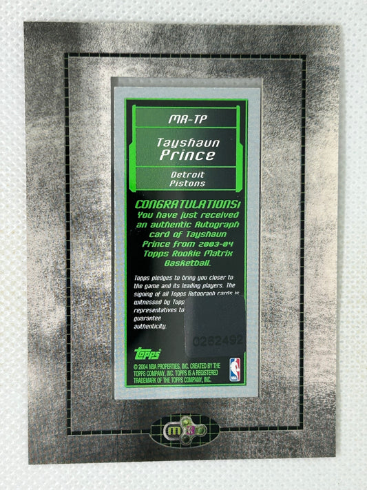 2003-04 Topps Rookie Matrix Mini Framed Faded Autograph Tayshaun Prince #MA-TP Detroit Pistons