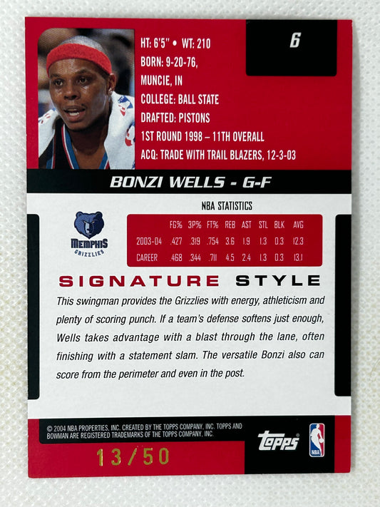 2004-05 Bowman Signature Red Foil /50 Bonzi Wells #6 Memphis Grizzlies Signed Card
