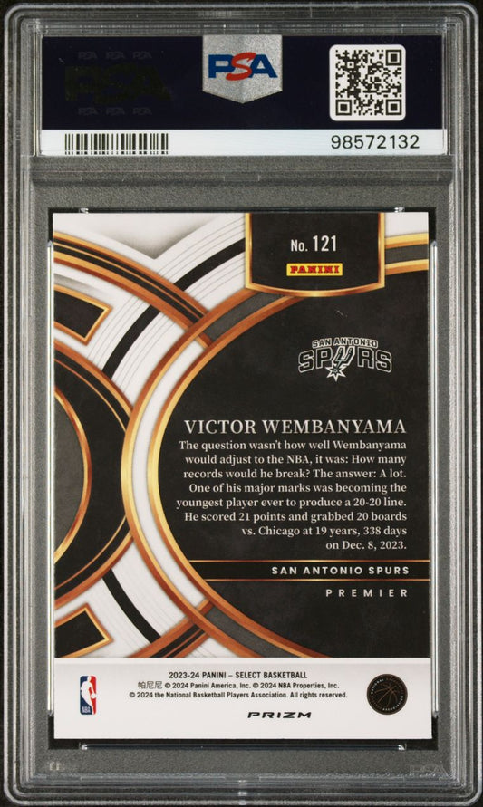 2023 Panini Select Silver Prizm Premier #121 Victor Wembanyama Rookie PSA 9 San Antonio Spurs