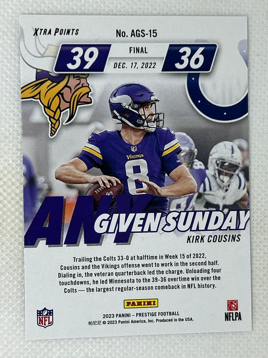 2023 Panini Prestige Any Given Sunday Red Foil /399 Kirk Cousins #AGS-15 Minnesota Vikings