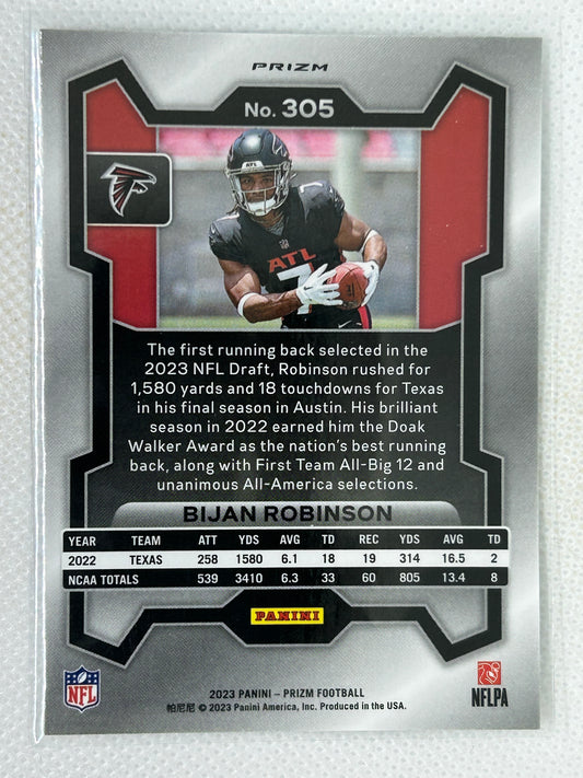 2023 Panini Prizm Silver Prizm Rookie Bijan Robinson #305 Atlanta Falcons