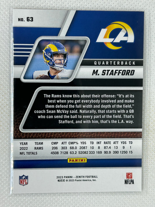 2023 Panini Zenith Matthew Stafford #63 Los Angeles Rams