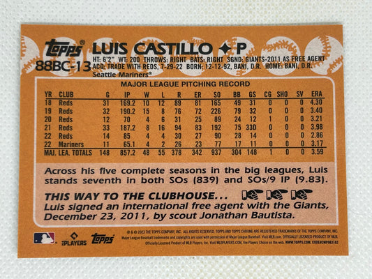 2023 Topps Chrome Refractor Luis Castillo 1988 Topps #88BC-13 Seattle Mariners Signed Card