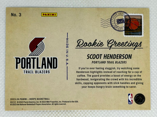 2023-24 Panini NBA Hoops Winter Rookie Greetings Scoot Henderson #3 Portland Trailblazers