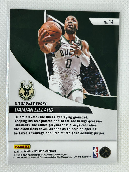 2023-24 Panini Mosaic Elevate Reactive Silver Prizm #14 Damian Lillard Milwaukee Bucks
