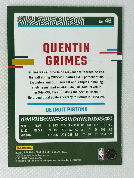 2023-24 Panini Optic Quentin Grimes #46 Detroit Pistons Signed Card