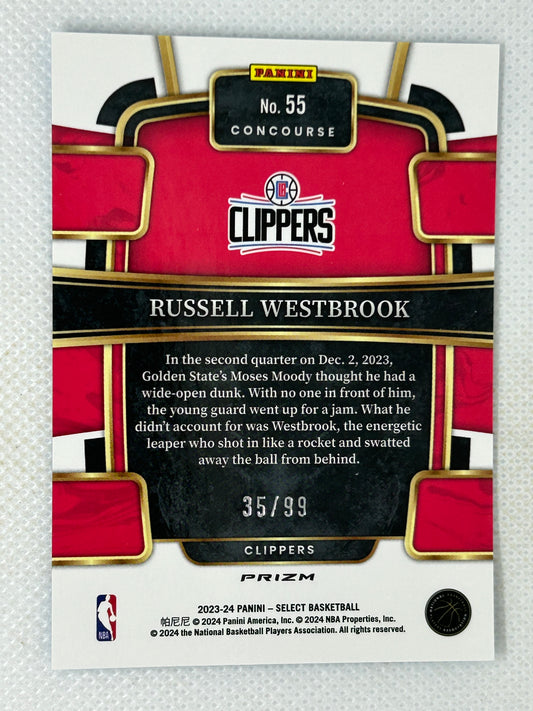 2023-24 Panini Select #55 Russell Westbrook Light Blue Disco Prizms #/99 Los Angeles Clippers