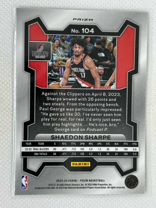 2023-24 Panini Prizm Green Shaeden Sharpe #104 Portland Trailblazers