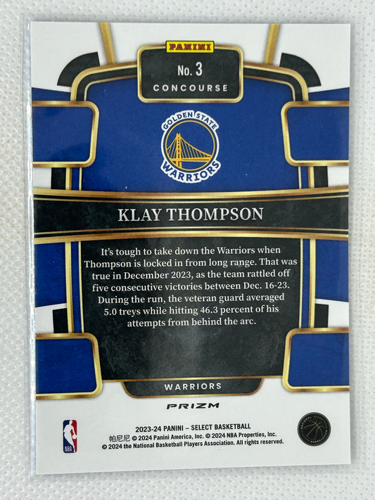 2023-24 Panini Select Blue Silver #3 Klay Thompson Golden State Warriors
