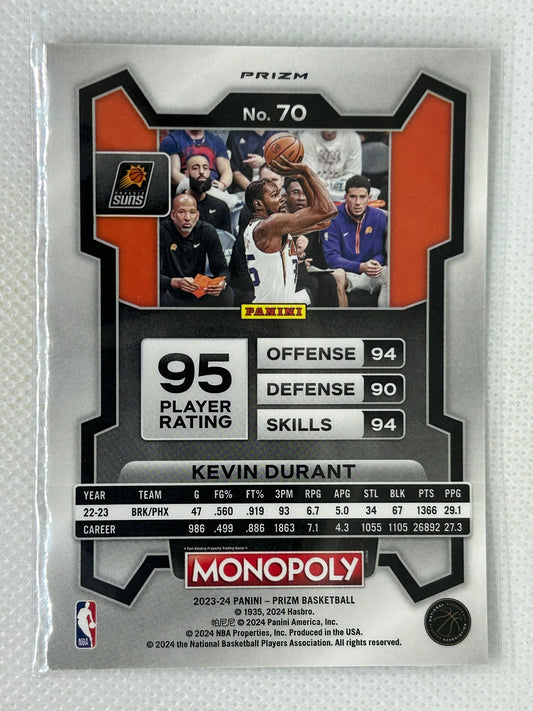 2023-24 Panini Prizm Monopoly Kevin Durant Red Pattern Icons Prizm #70 Phoenix Suns SSP