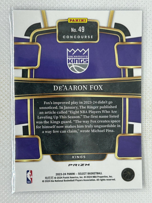 2023-24 Panini Select Blue Silver #49 De'Aaron Fox Sacramento Kings
