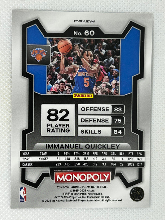 2023-24 Panini Prizm Monopoly Purple Wave Immanuel Quickley #60 New York Knicks