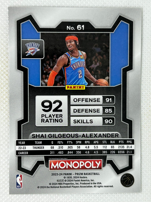 2023-24 Panini Prizm Monopoly Shai Gilgeous-Alexander #61 Oklahoma City Thunder