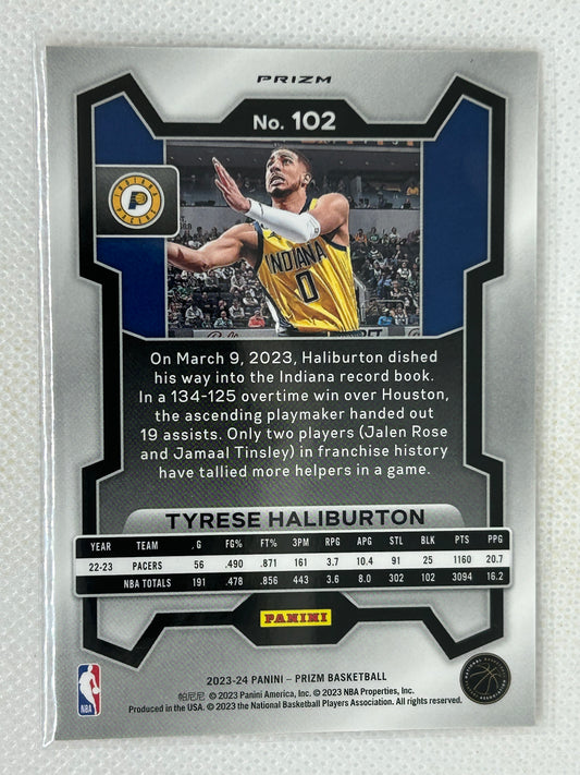 2023-24 Panini Prizm Orange Cracked Ice #102 Tyrese Haliburton Indiana Pacers