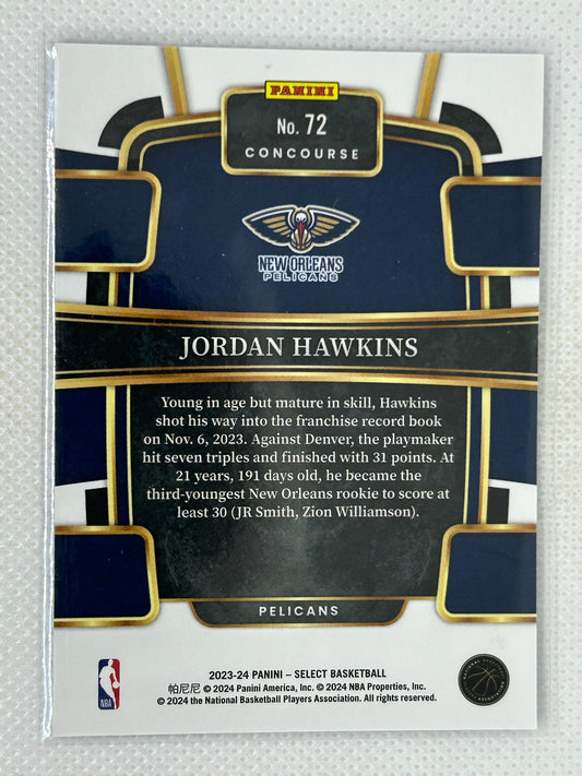 2023-24 Panini Select Rookie Jordan Hawkins #72 New Orleans Pelicans