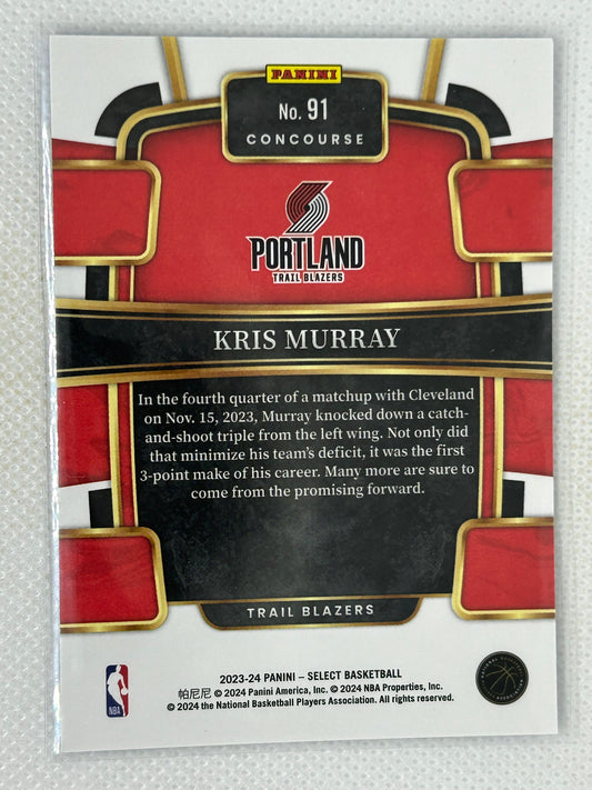 2023-24 Panini Select Rookie Kris Murray #91 Portland Trailblazers