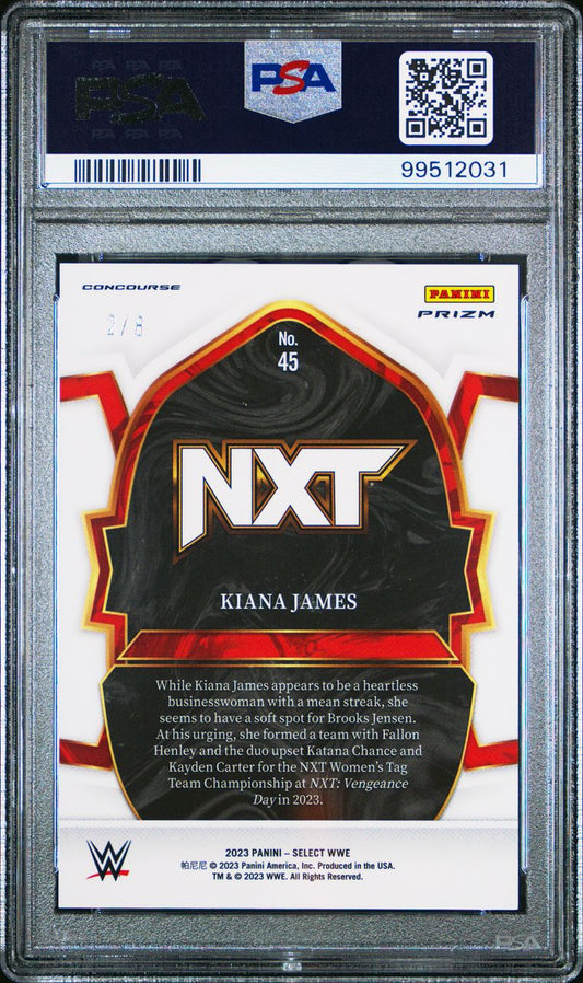 2023-24 Panini Select WWE Lucky Envelopes Gold Prizm #45 Kiana James /8 PSA 10 GEM MINT