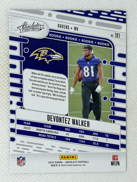 2024 Panini Absolute Rookie Devontez Walker #181 Baltimore Ravens