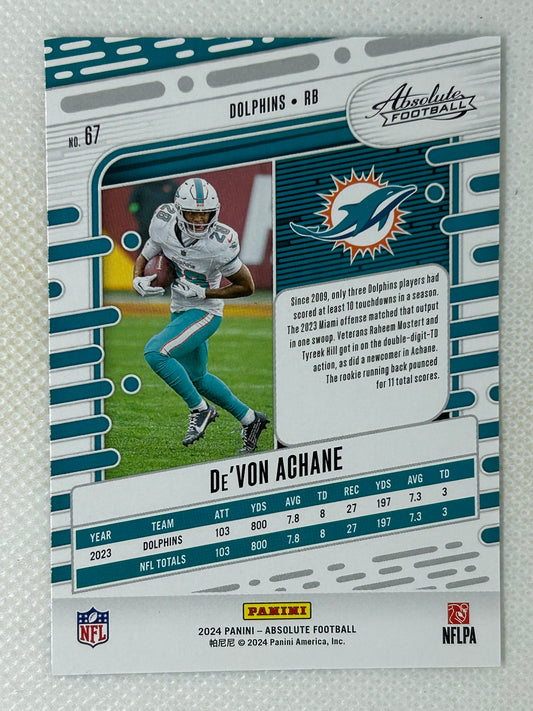 2024 Panini Absolute De'Vone Achane #67 Miami Dolphins