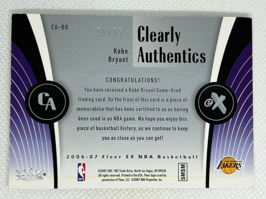 2006-07 Fleer EX Clearly Authentics /75 Prime Patch Kobe Bryant #CA-BR Los Angeles Lakers