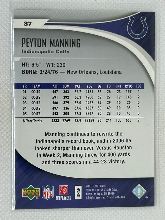 2006 SP Authentic Football Card #37 Peyton Manning Indianapolis Colts
