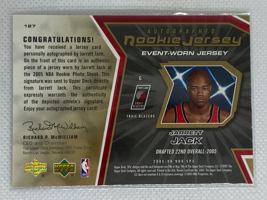 2005-06 Upper Deck SPx Rookie Rc Auto Autograph Jarrett Jack #’d /1499 Jersey