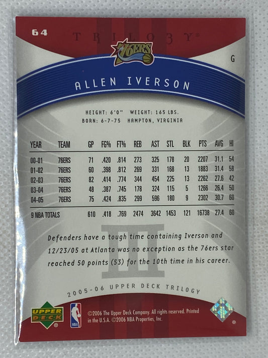 2005-06 Upper Deck Trilogy Allen Iverson #64 HOF Philadelphia 76ers