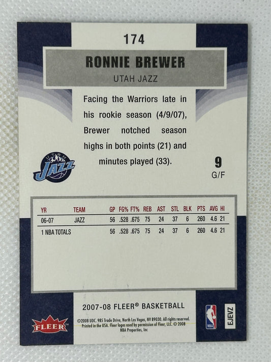 2007-08 Fleer #174 Ronnie Brewer Utah Jazz Signed Card