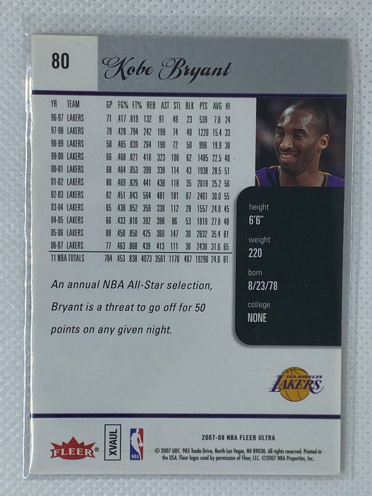 2007-08 Fleer Ultra NBA Basketball Card Los Angeles Lakers Kobe Bryant #80