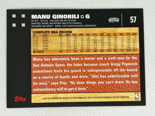 2007-08 Topps Manu Ginobili #57 San Antonio Spurs