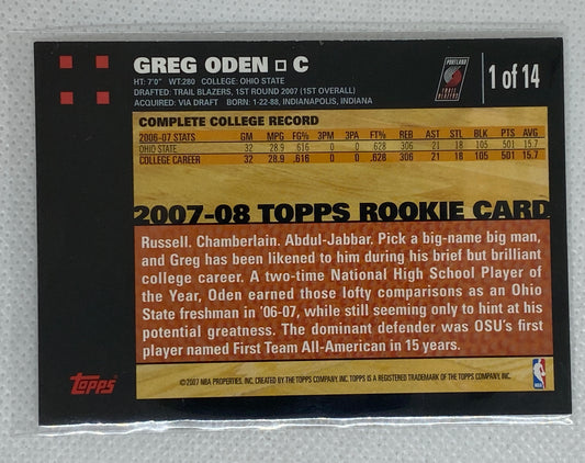2007-08 Topps Greg Oden - Rookie RC White #1 of 14 Portland Trail Blazers
